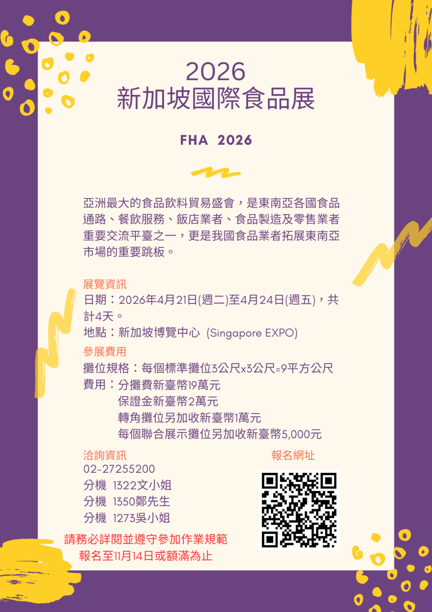 【產業動態轉發-外貿協會】轉發2026新加坡國際食品展 10/7起開放報名