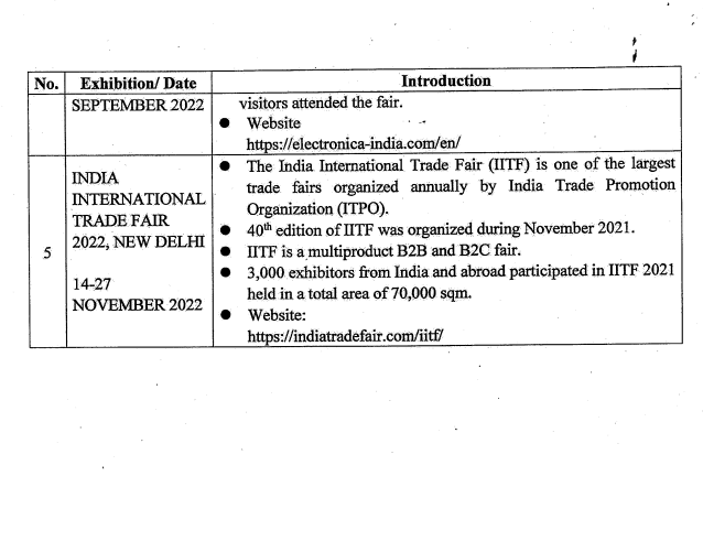 印度微中小企業部提供我業者可參加印度國際展覽(貿易、食品飲料、電子等等),詳細展覽請看附件